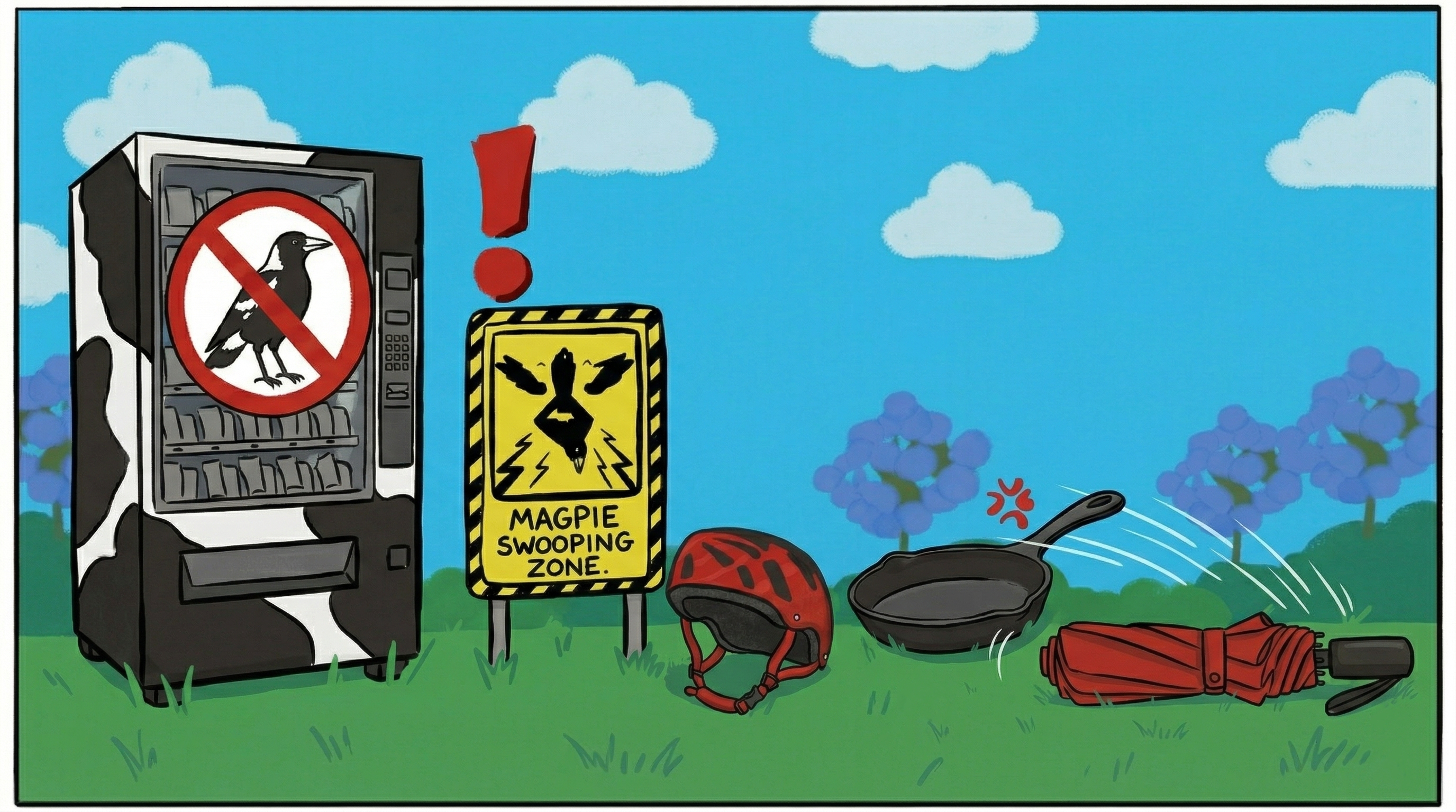 This is “Protect Yourself from Magpies” vending machine. You can choose different items to prevent yourself from swooping magpies. Wwise was used to showcase this scene.