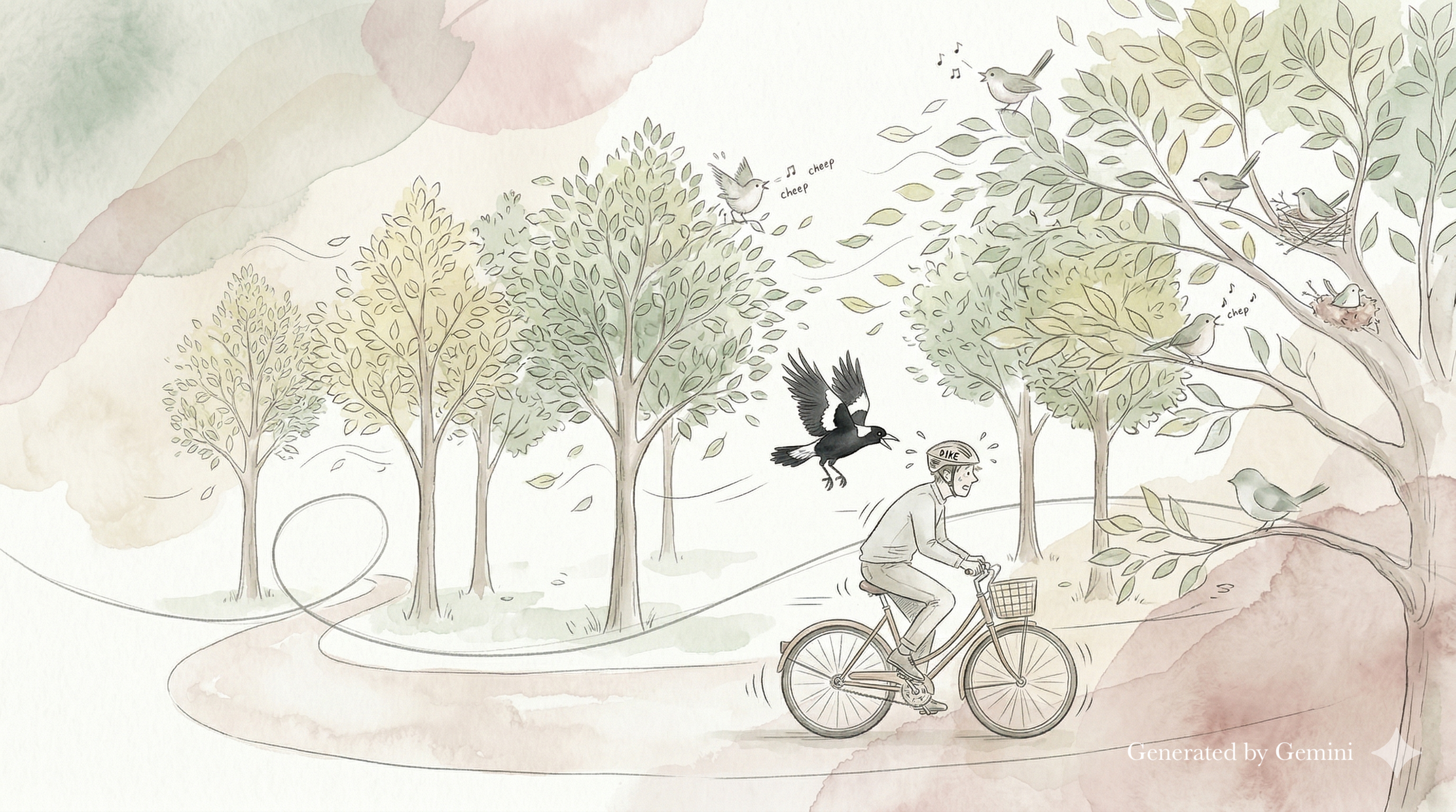 Using synthesized sound to build the soundscape, mimicing a typical spring day in Australian parks with winds, bird songs and swooping magpies.